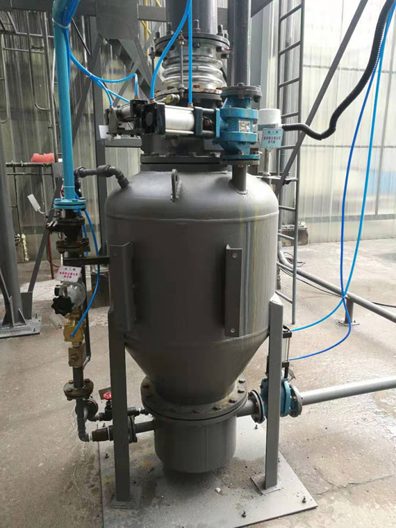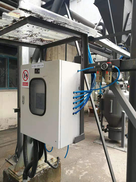 渣庫(kù)放渣過(guò)程中,由于是采用敞口式灰車裝灰,造成飛灰特嚴(yán)重。除塵方式采用現(xiàn)場(chǎng)新建一臺(tái)布袋脈沖塵器,除塵器將收集到的原有渣庫(kù)的揚(yáng)灰,通過(guò)氣力輸送系統(tǒng),將灰渣送至原有300方鋼渣庫(kù)中貯存。此方案完美解決了渣庫(kù)飛灰嚴(yán)重的問(wèn)題。